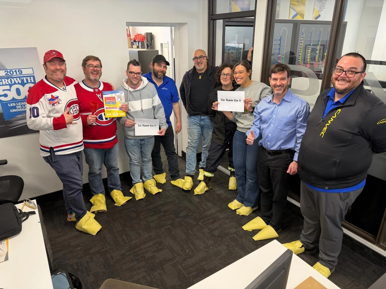Lancement en force. L’équipe est prête. L’énergie est là. Nos chemises bleus et nos souliers jaunes sont voyant!